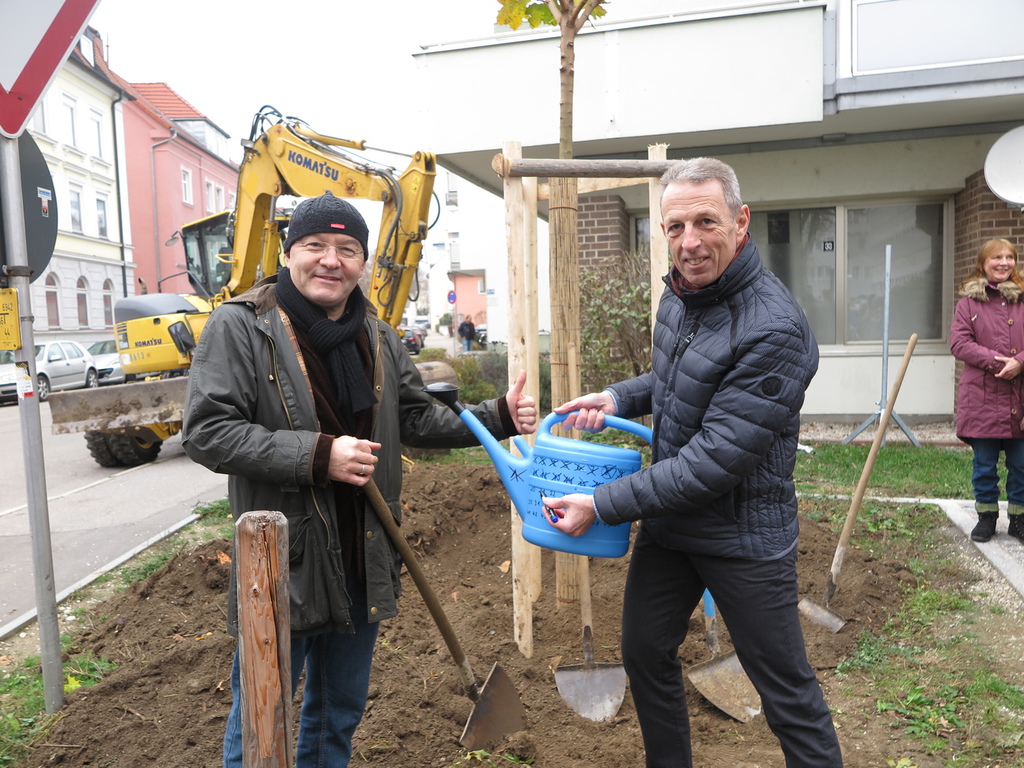 Die Aktion "100-Bäume-Programm" wurde von Willi Forster im Winter 2015 initiert (Auftaktveranstaltung in Sophie´s Alm/alte Schlachthofhalle) zusammen mit Gästen, Stadträten*Innen, OB Rampf und den ersten Spendern). Die erste Pflanzung war dann im Frühjahr 2016 zum Tag des Baumes vor der Bäckerei Wackerl. Die Pächter Fam. Keilwerth haben auch den ersten Baum gespendet.