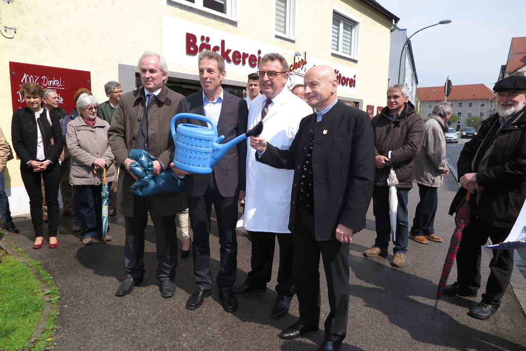 Start der Pflanzaktion - Grünfläche vor Bäckerei Wackerl