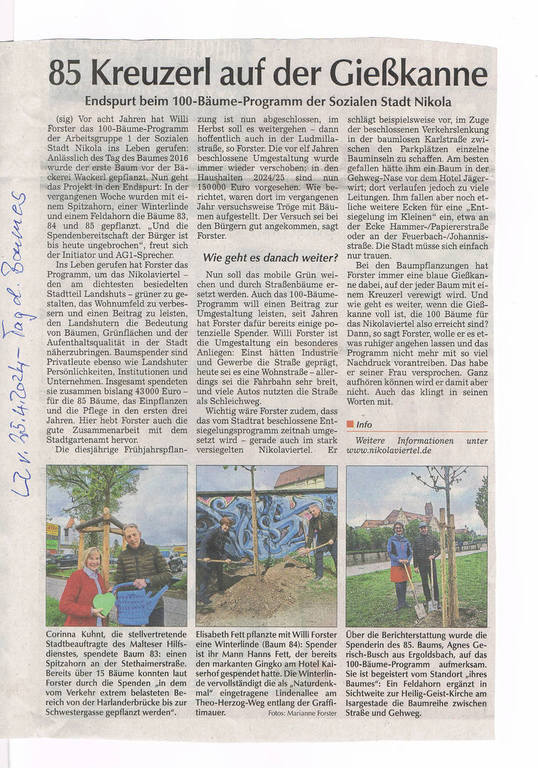 78 Landshuter Bauminitiative Kuchenbaum Grimm hermann Nikolasgtraße Grünstreifen Arbeitsagentur